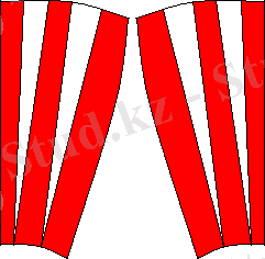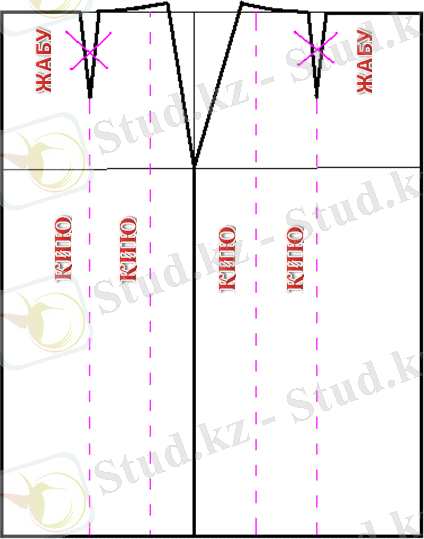 Дайын үлгіні матаға салдық, бормен сыздық, қиып алдық.