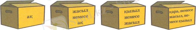 Ж-бы: 1-қорапта ақ, 2-қорап: жасыл, 3-қорап:қызыл, 4-қорап: қара