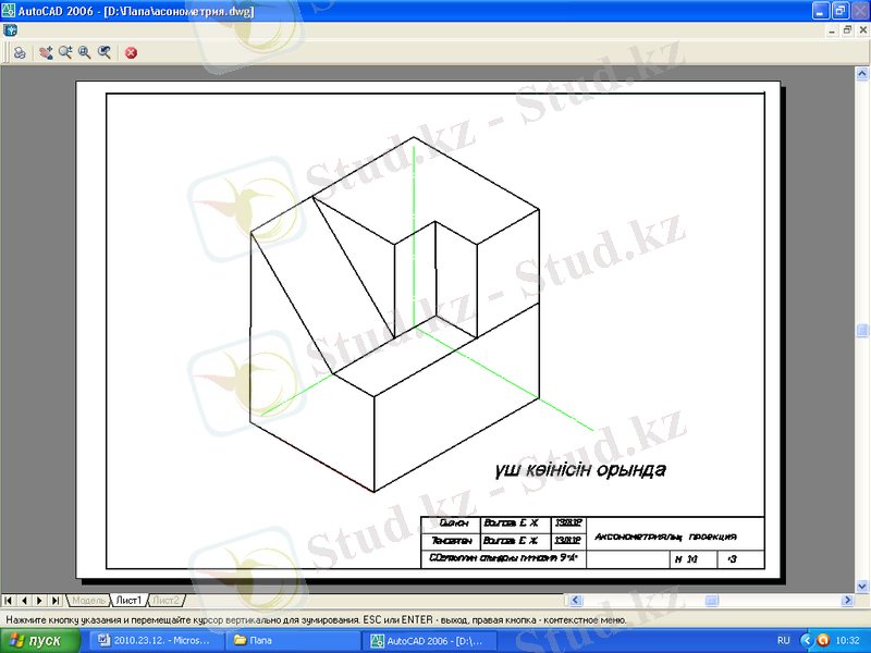 Сабақтың мақсаты: Оқушыларға үш жазықтықта проекциялау арқылы бұйымдарды