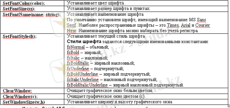 Паскаль тілінде графикалық режимде мәтін жазу процедуралары (8-сынып)