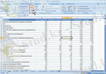 1. Сортталатын мәліметтерден кез келген ұяшықты ерекшелеңіз.