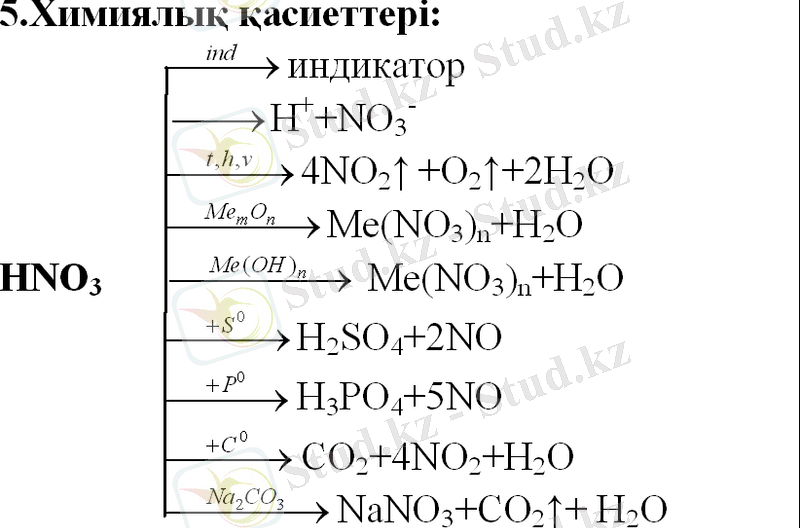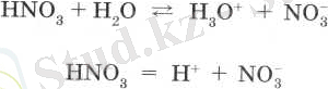 Азот қышкылы. Азоттьщ маңызды қосылыстарының бірі - азот қышқылы НNО 3 . Онда азот +5 тотығу дәрежесін көрсетеді. Онын судағы ерітіндісі қышқыл қалдығына және гидроксоний ионға диссоциацияланады: