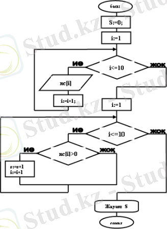 Тағыда i=1 … 10 дейін өзгереді, әр жолы егер nc[i] >0 болса s мәнін 1-ге арттырып отырамыз.