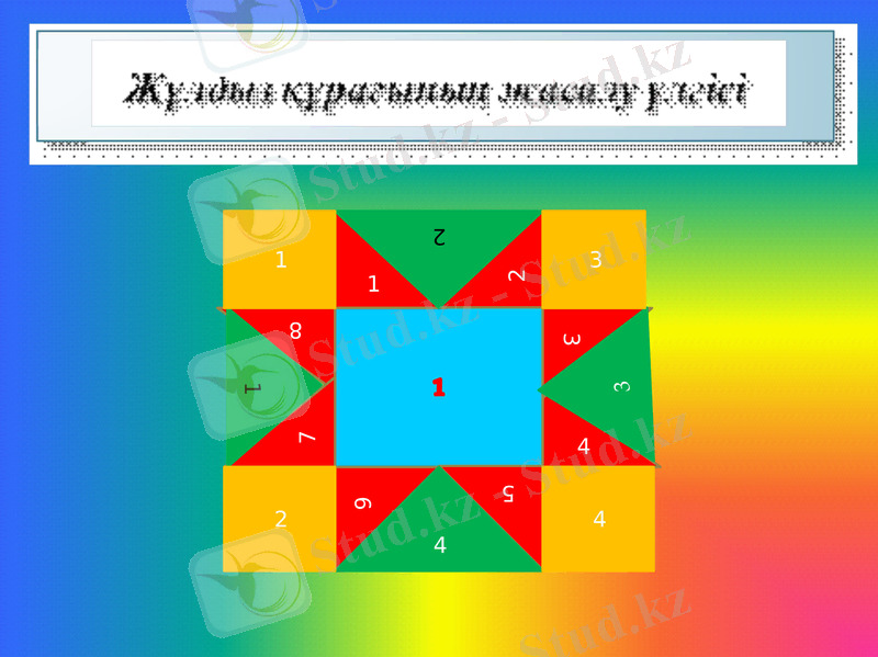 1. Үш түсті матадан қабырғалары тең тіктөртбұрыш екі данадан дайындау