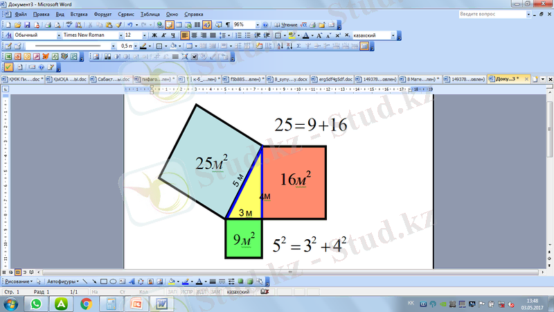 - Одан қандай қорытындыға келуге болады? (катеттері квадраттарының қосындысы гипотенузаның квадратына тең)