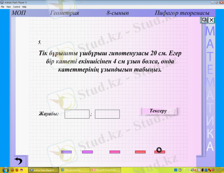 Тақтадан Пифагор теоремасы туралы бейнеролик көрсетіледі.