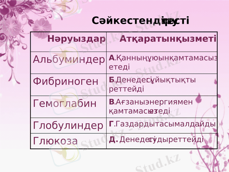 Оқушыларға қанның құрамы мен қасиеттері, қан жасушаларының атқаратын қызметі туралы түсіндіру.