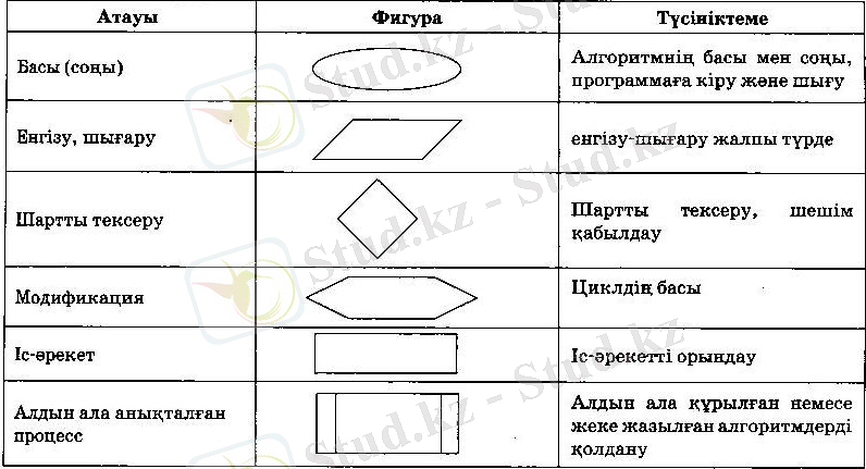Блок-схемана құруда қолданылатын негізгі геометриялық фигуралар: