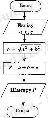Үшбұрыштың периметрін табу блок-схемасы төмендегідей сызылады: