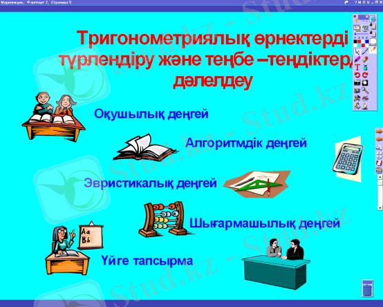 Тәрбиелілігі: Тригонометриялық өрнектерді түрлендіріп