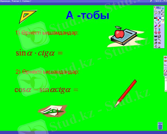 9-сынып алгебрасы: Тригонометриялық өрнектерді түрлендіру және теңдіктерді дәлелдеу (деңгейлеп-саралап оқыту және интерактивті тақта қолдану)