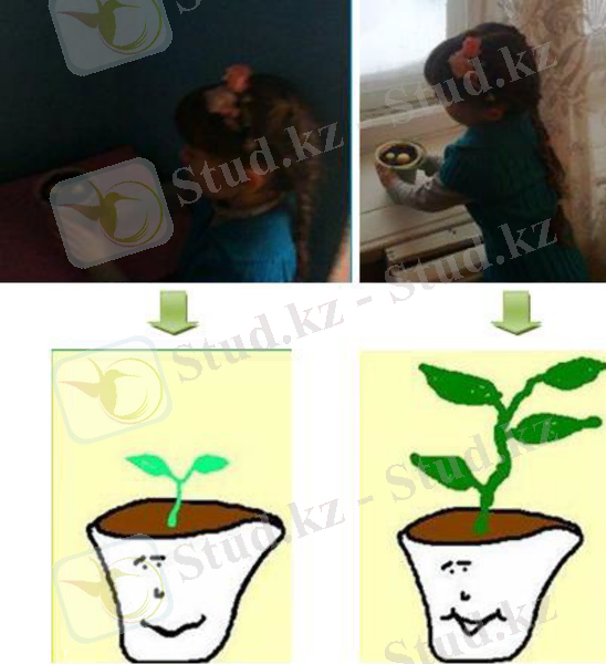 Суретке мұқият қараңыз. Жарық және қараңғы жерде өскен өсімдіктерді салыстырып сипаттаңыз.