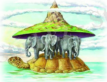 Ежелгі Үндістан халқы Жерді үш піл көтеріп тұрған жартылай сфера ретінде елестеткен. Ал пілдер тасбақаның үстінде орналасқан, ал тасбақа мұхитта жүзіп келе жатыр деген тұжырым болған.