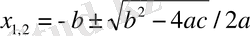 ах 2 +bx+c=0, a≠0 (1) квадраттық теңдеуінің нақты түбірлері бар болады, егер оның дискриминанты теріс емес болса: