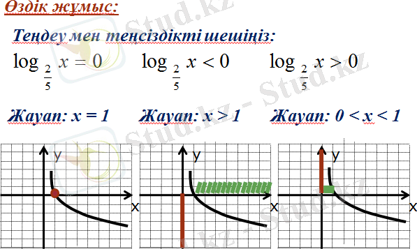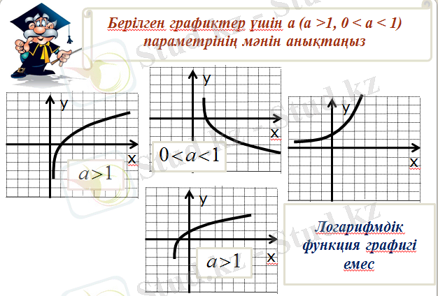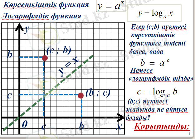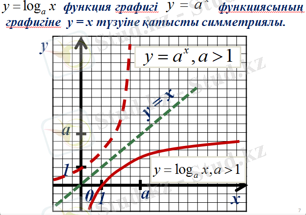 Оқушылар y = a x (a> 0, a ≠ 1) көрсеткіштік функцияға кері функция