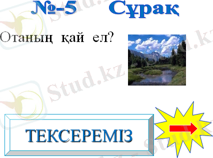 Бүгінгі сабақтың тақырыбы «Менің Отаным - Қазақстан» .