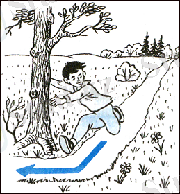 Жылдамдық бағытының өзгеруі де әлде бір дененің әрекетінен болады. Мысалы, лақтырылған доп қабырғаға немесе қолға соғылғанда өз бағытын өзгертеді. Шапшаң жүгіріп келе жатқан адам ағашты орағытып өту үшін оны қолымен ұстайды (1-сурет) .