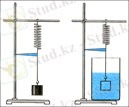 Ол үшін динамометрге жүкті ілеміз нұсқаушы - бағдаршасы бар серіппе де жарайды. Бағдаршаның көрсетуін есте сақтап жүкті суға түсіреміз (динамометрден ажыратпай) . Біз бағдаршаның салмақтың азайғанын көрсеткенін көреміз (1-сурет) .