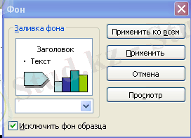 слайдқа беріледі. Фондық түсті барлық слайдтарға беру үшін Барлығын қолдану (Применить ко всем) батырмасын шертеміз.