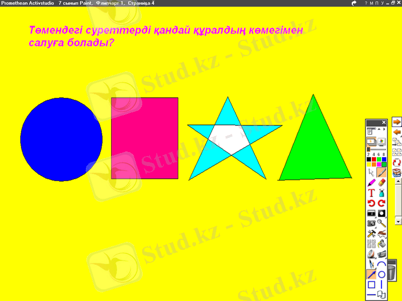 Сабақтың мақсаты: Оқушыларды графикалық редакторда жұмыс істеуге