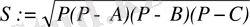 S:=SQR(P*(P-A) *(P-B) *(P-C) ) ;
