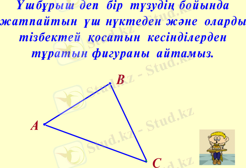 4. Үшбұрыш төбелеріне қойылған үш әріппен белгіленіп оқылады.