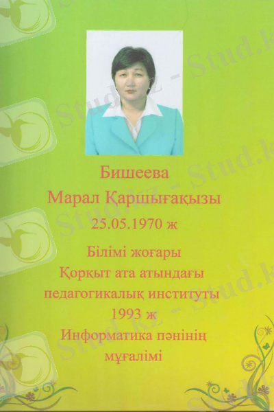 «Қазақ орта мектеп-гимназиясы» коммуналдық мемлекеттік мекемесінің информатика пәні мұғалімі Бишеева Марал Қаршығақызы