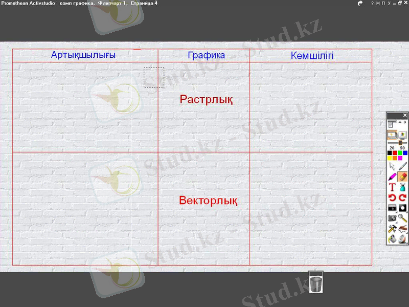-Оқушылар Растрлық және Векторлық графиканың артықшылығы мен кемшілігін толтырады.