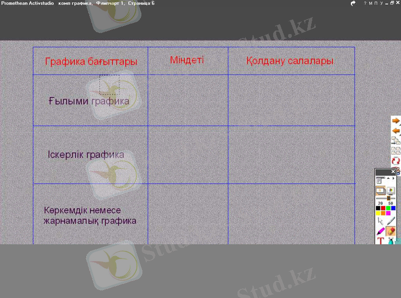 «Компьютерлік графика» тақырыбын оқу, мазмұндау, қорытындылау