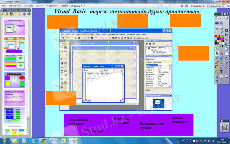 Сабақтың құрал-жабдықтары: интерактивті тақта, постер, түрлі-түсті маркерлер, Visual Basic 6. 0, компьютер, локальды желі