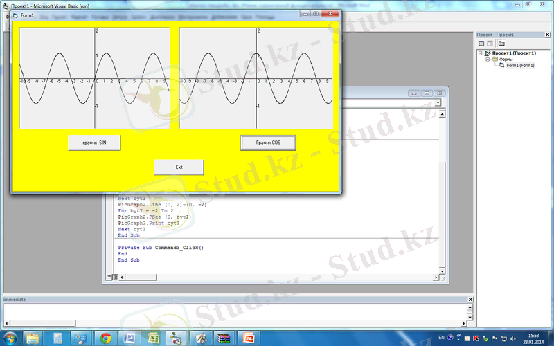 Жұмыстың мақсаты: Visual Basiс ортасында синус және косинус тригонометриялық