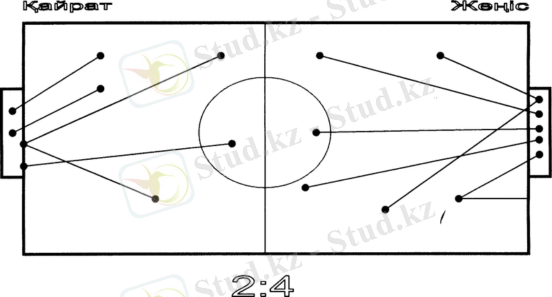 Плакат алып, футбол алаңының схемасын саламыз. 2 топқа бөлеміз, сол бөлінген топтарға ат қоямыз. Қайрат тобы және Жеңіс тобы. Аланның дәл ортасынан бөлінеді. Қайрат тобының қақпа жағына Жеңіс тобының доптарын жіпке тіземіз, тура сол сияқты Жеңіс тобының қақпа жағына да Қайраттың жіпке тізілген түймелерді орналастырамыз. 2 топ бір-біріне гол салу үшін сұраққа жауап береді. Егер сұраққа жауап бермесе, сол түйме бастапқы орнында қалады. 2 топтың оқушыларыда осылай қайталайды. 2 топтың қайсысы жеңгенін білу үшін, қақпадағы түймелерді санаймыз. Егер де тепе-тең болса, 2 топ басшысына сұрақ қойылады. Қай жақтың топ басшысы жауап берсе, сол жактың тобы жеңіске жетеді. Бұл ойында кез-келген пәнге және кез-келген тақырыптарға қолданса болады. Тек қана сұрақтары өзгереді. Бұл ойынның тиімділігі.