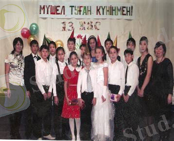Оқушылар тойға лайық әзірленген, киім киген, сахна безендірілген.