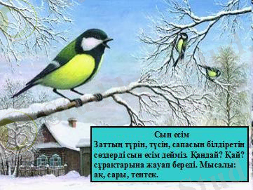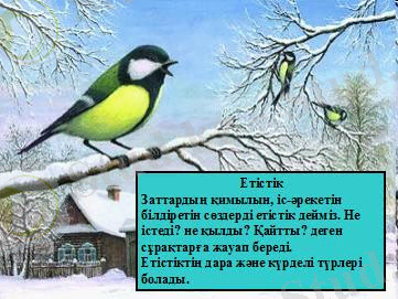 Дамытушылық: Оқушылардың суреттер, сұрақ - жауап арқылы сөздік қорын, тіл байлығын жетілдіру, ойлау қабілеттерін дамыту.