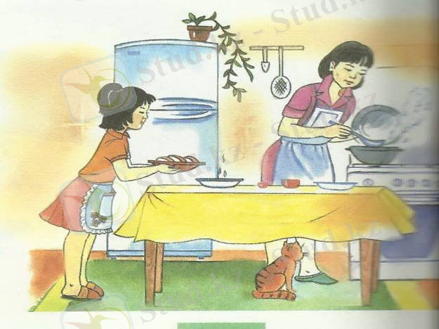 Көрнекі құралдар: сюжетті суреттер, қағаздан қиылған жүректер, дәптер, оқулық.