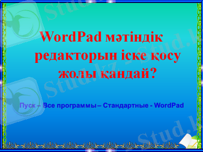1. WordPad мәтіндік редакторын іске қосу жолы қандай?