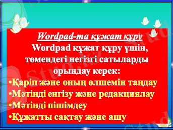 Тақырыбы: WordPad мәтіндік редакторында құжат құру, сақтау, ашу