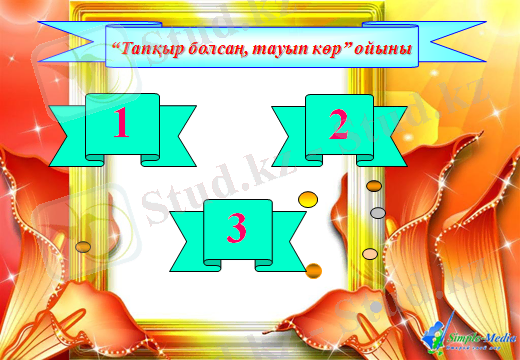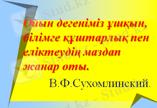 . Ойынға қатысушыларды ойынның негізгі шарттарымен таныстыру. 1-кезеңКім жүйрік П. С. Порецкийдің «Математикалық логика өзінің пәні жағынан логика да әдісі жағынан математика болып саналады»деген қанатты сөзбен 7 логикалық сұрақ берілді2 -кезеңОйлан тап «Білім жолы-қиын жол», ойлан бала, Бір ғаламат шығады ойдан ғана, деген қанатты сөзбен 6 есеп берілген. Бұл есептерді шеше білу үшін «Математикалық логика» курсын оқытып, үйреттім. Олар: логикалық алгебра, кестелік тәсіл, пайымдау, талдау тәсілі. Абзал, Дулат және Балнұр әртүрлі шет тілдерін:ағылшын, жапон және араб тілдерін оқиды. «Кім қандай тілді оқиды?» деген сұраққа біреуі: «Абзал ағылшын тілін оқиды, Дулатағылшын тілін оқымайды, алБалнұр араб тілін оқымайды» деп жауап берді. Шындығында, бұл жауаптың біреуі ғана дұрыс, қалған екеуі жалған болып шықты. Кім қандай тілді оқиды?
