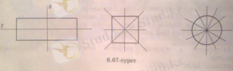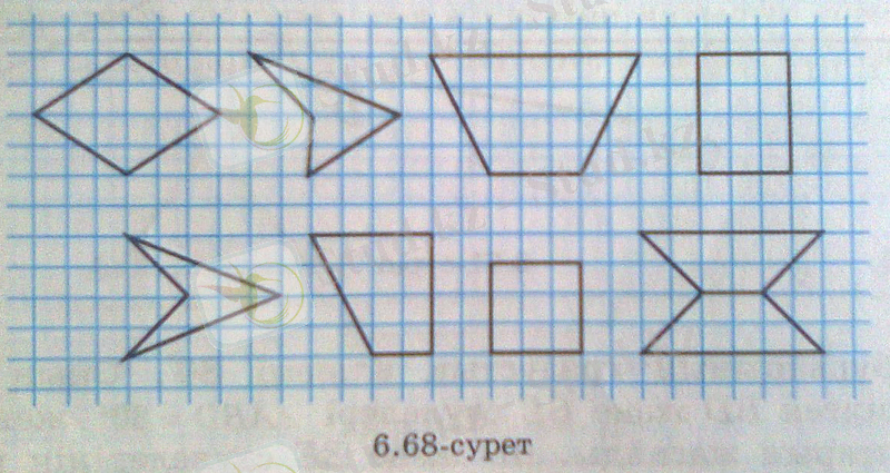 «А» тобы. №1169. Мына фигуралардан осьтік симметриялы фигураларды таңдап алыңдар. Оларды дәптерге көшіріп салып, симметрия осьтерін сызыңдар (6. 68-сурет) .