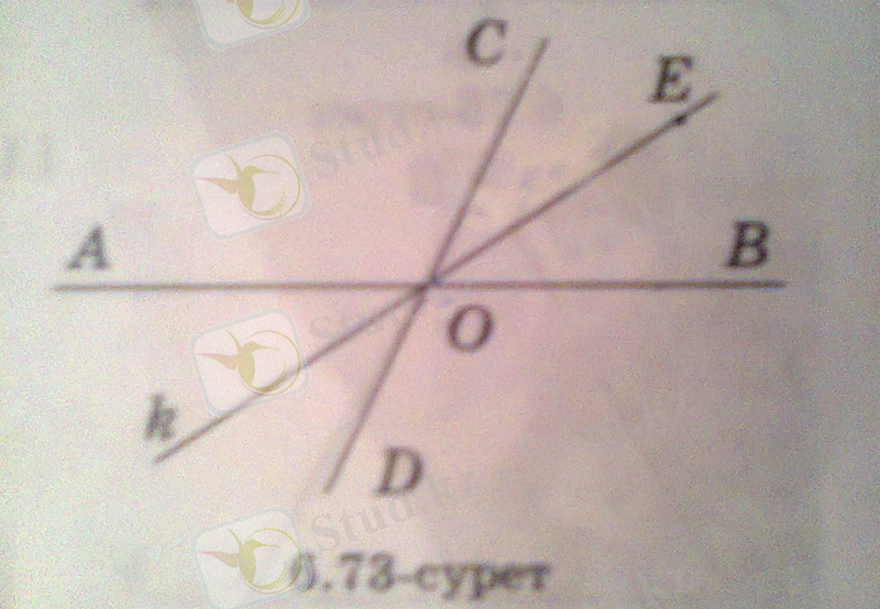 «В» тобы. №1180. АВ және СД түзулері О нүктесінде қиылысады (6. 73-сурет) . k түзуі - АОД және СОВ вертикаль бұрыштарының симметрия осі. Е нүктесі k түзуіндегі нүкте. СОЕ бұрышының градустық өлшемі 30 0 . АОД бұрышының градустық өлшемін табыңдар.