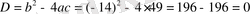 - Егер, а+в+с=0, болса, онда х1=1 х2= с∕а
