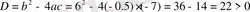 D = b 2 - 4ac = (- 5) 2 - 4(- 8) = 25+32 = 57>0