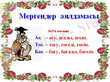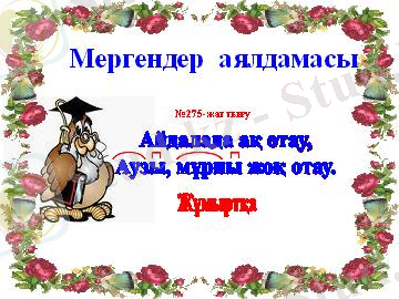 9-слайд. Мергендер аялдамасының келесі тапсырмасы 275-жаттығу. Жұмбақты жазып, шешуін табу. Қарамен жазылған сөздің түбірін табу. Түбір сөздің өзгеру себебін түсіндіру.