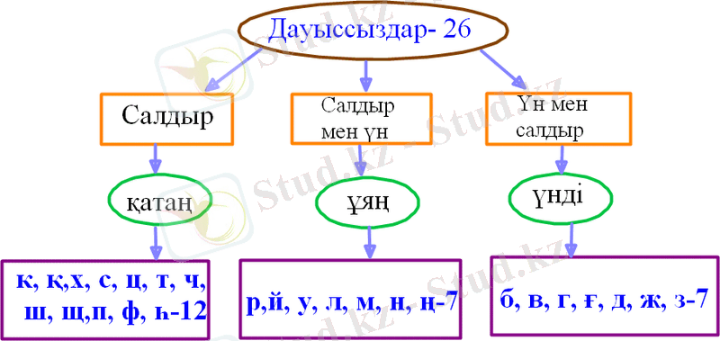 - Дауыссыз дыбыстардың сызбасын толтыр.