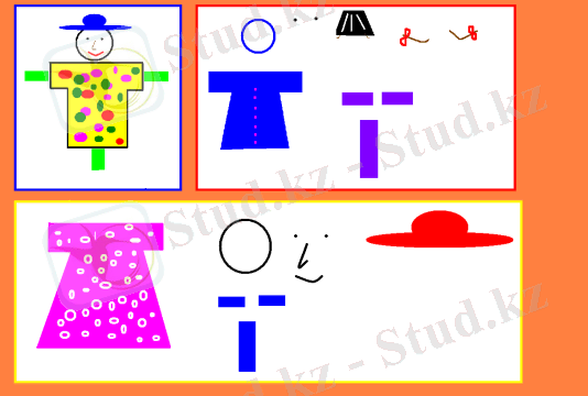 2. «Бөгде планеталықтар» Геометриялық фигуралардан (шеңбер, тік төртбұрыш, үшбұрыш, шаршы, эллипс) композиция құр. Фигураларды бұруға және еңкейтуге болады.