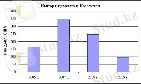 2007 жылда Қазақстанда цементтін бағасы өте жоғары болды. Елге сондықтан Ресей, Қырғыстан, Өзбекстан, Қытай елдерінен 3млн. Тонна цемент әкелінді. Осы жылы 9млн. Тонна цемент өндірілді. Бірақ, цементтін бағасы (25-30 мың теңге), ал қазір (9-12мың теңге) . Ал, қазақстандықтардың сол кездегі цемент өндіруі 4, 5-5 млн. Тоннаға дейін жетті. Цементтін бағасы 2008-2009 жылы өз қалпына келді.