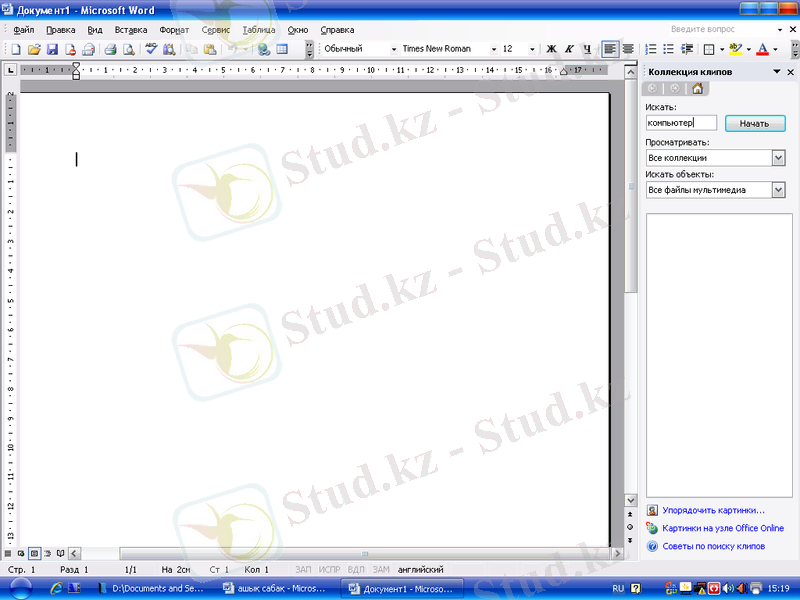 - Терезені жауып, сурет енгізетін жерге курсорды қойып, Правка-Вставитькомандасын орындайсыңдар.