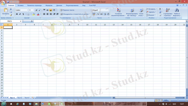EXCEL программасын іске қосу үшін «Пуск» менюінің «Программы» тобынан «Microsoft Excel» таңдаңыз. Excel терезесі ашылады. Excel: