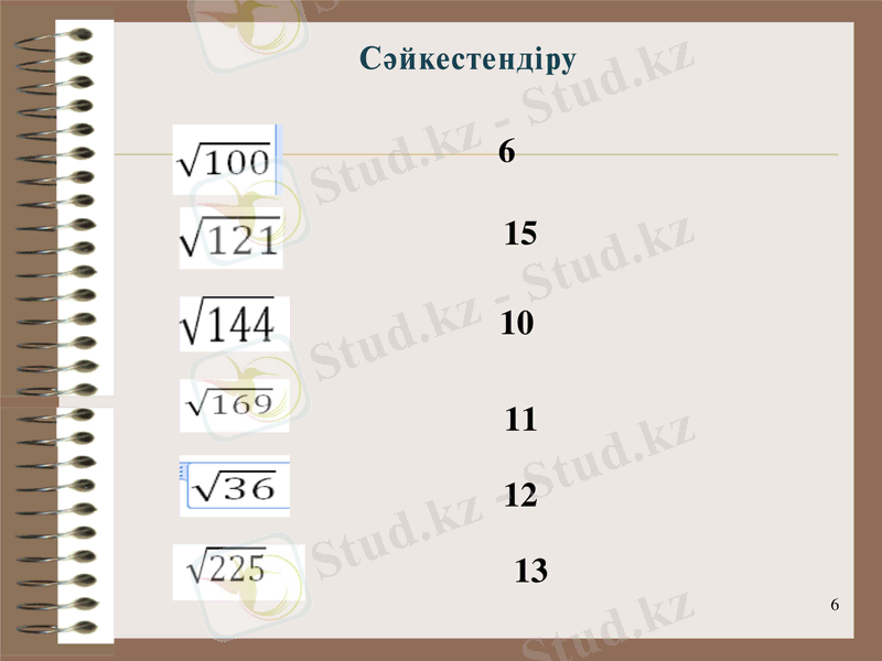 Көбісі: Квадрат түбірдің қасиеттерін ескеріп көбейткішті түбір таңбасының алдына шығара біледі.