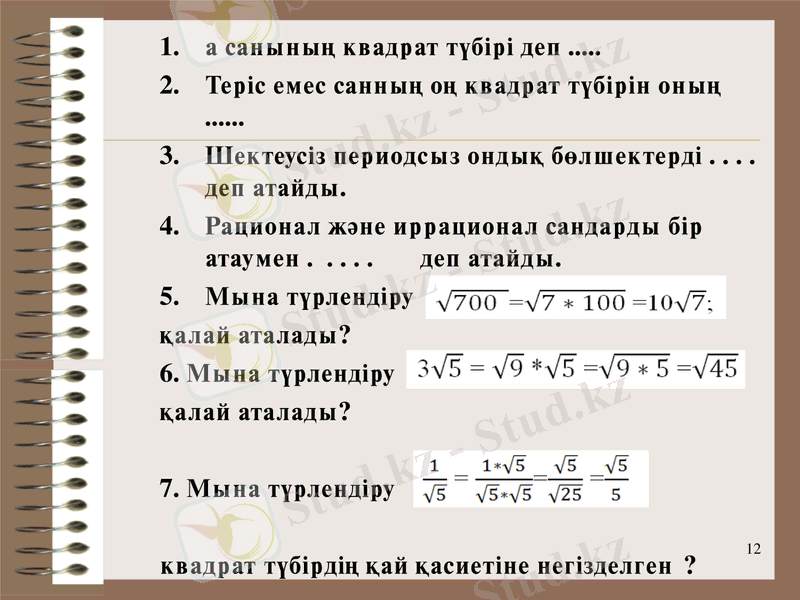 Кейбірі: Көбейткішті квадрат түбірдің таңбасының алдына шығарып амалдарды орындай біледі .